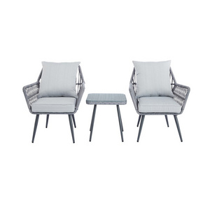 Custom Modern Rattan Rope French Bistro Beach Restaurant Outdoor Dining Table And 4 Seater Chair Set
