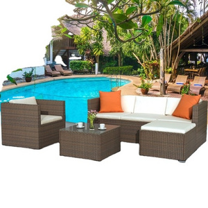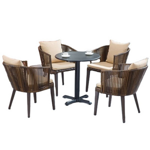 Residential & Commercial Outdoor Dining Set Aluminum Slat Top Table with 6 Olifen Woven Fabric Chair