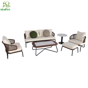 AJUNION Outdoor Rattan Garden Furniture Sectional Corner Sofa Patio Set with Adjustable Dining Table