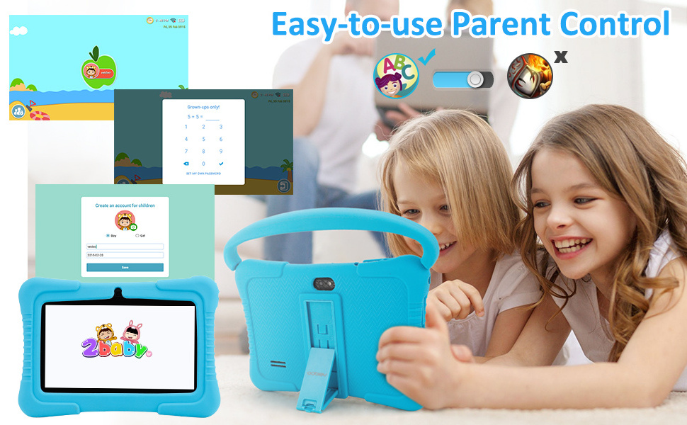 Veidoo 7 Inch kids Tablet Parents can login to the personal data of two babies at the same time: boy and girl, set a time limit and use it according to the age of the kids, including apps, videos, games, and kids safety websites. Kids can only access the content contained in iWawa that combines education and entertainment.
