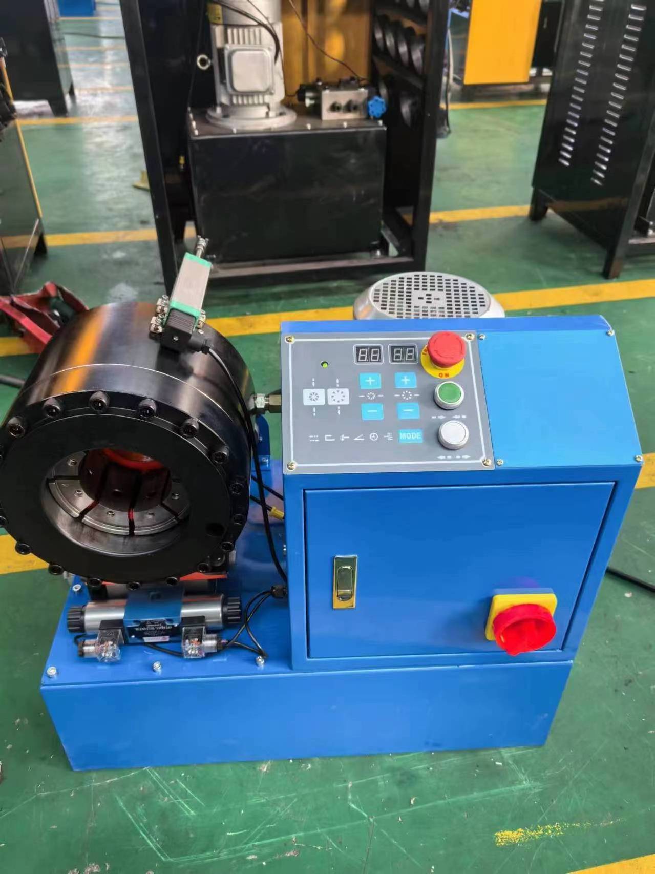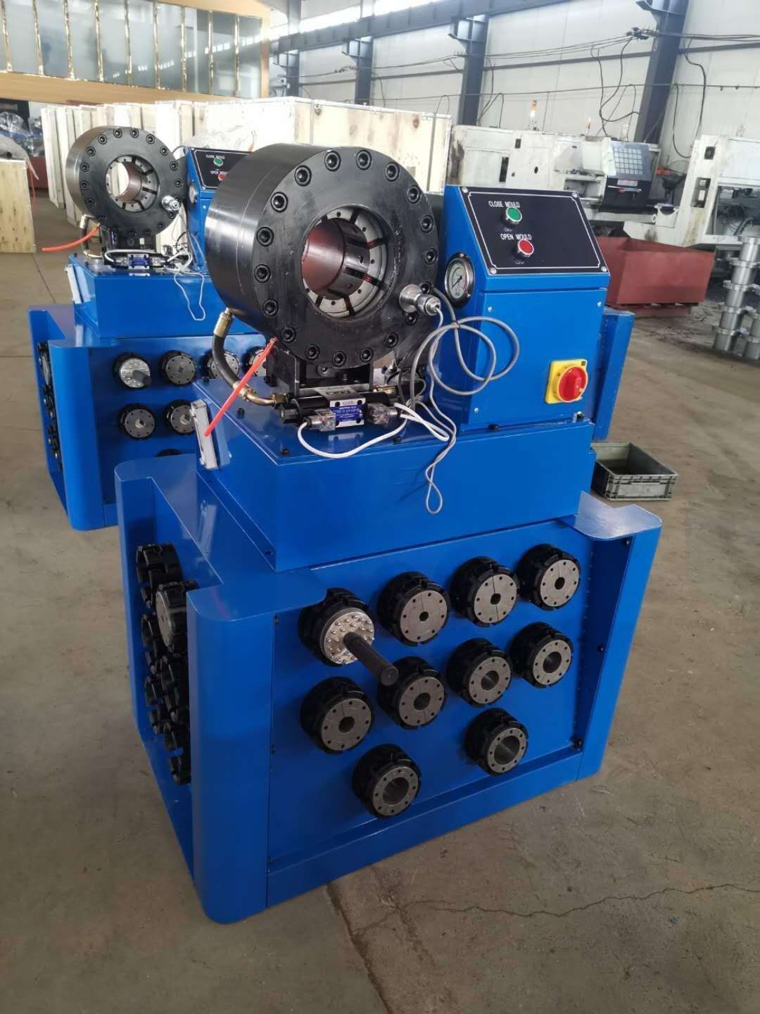 This is the crimping machine used for press hydraulic hose range 1/8-1-1/2" 1-4 steel wires,or other pipe OD range 4-68mm. The machine has automatic control, including 8/12 sets dies, 3kw/4kw motor power, with dies locker and holder, matched move wheels and working light, very convenient and portable.
