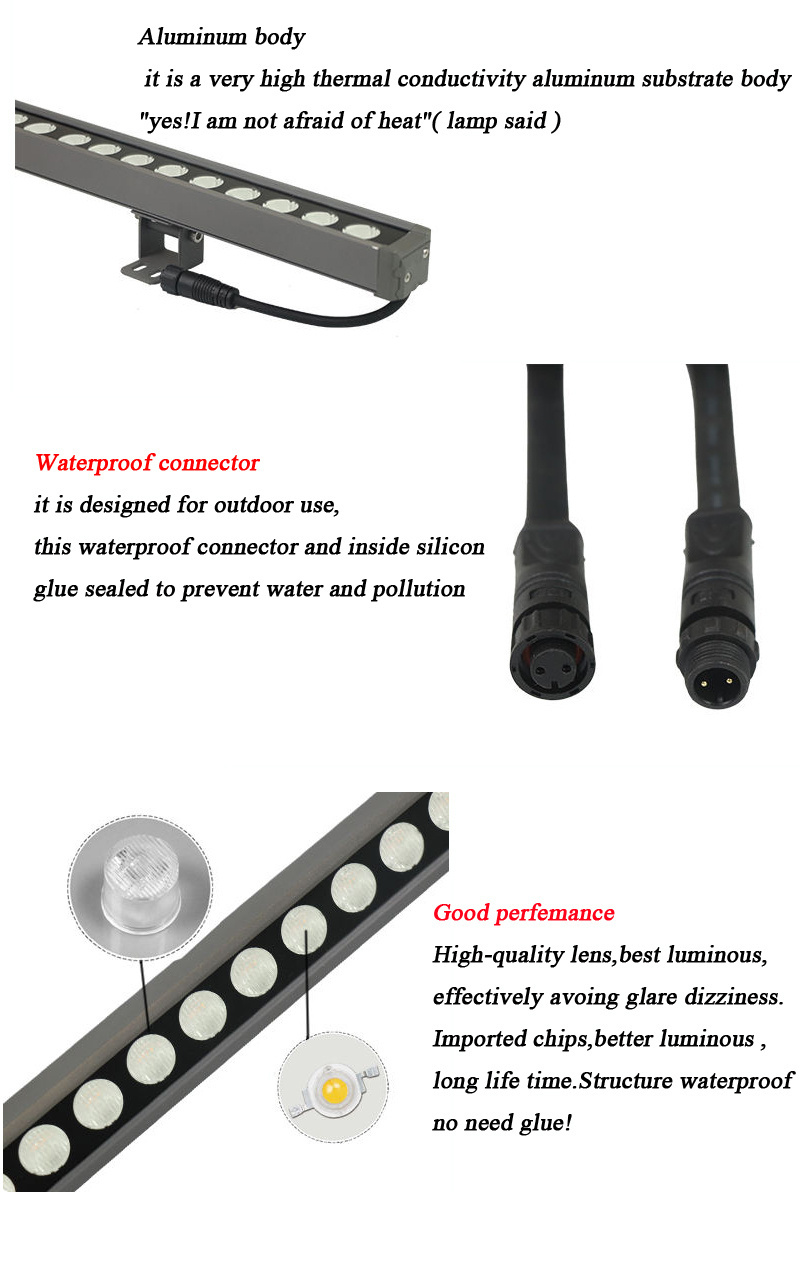 Hot Sale Aluminium Housing Outdoor Waterproof Wall Wash Lighting DMX512 RGBW 18W 24W Led Wall Washer