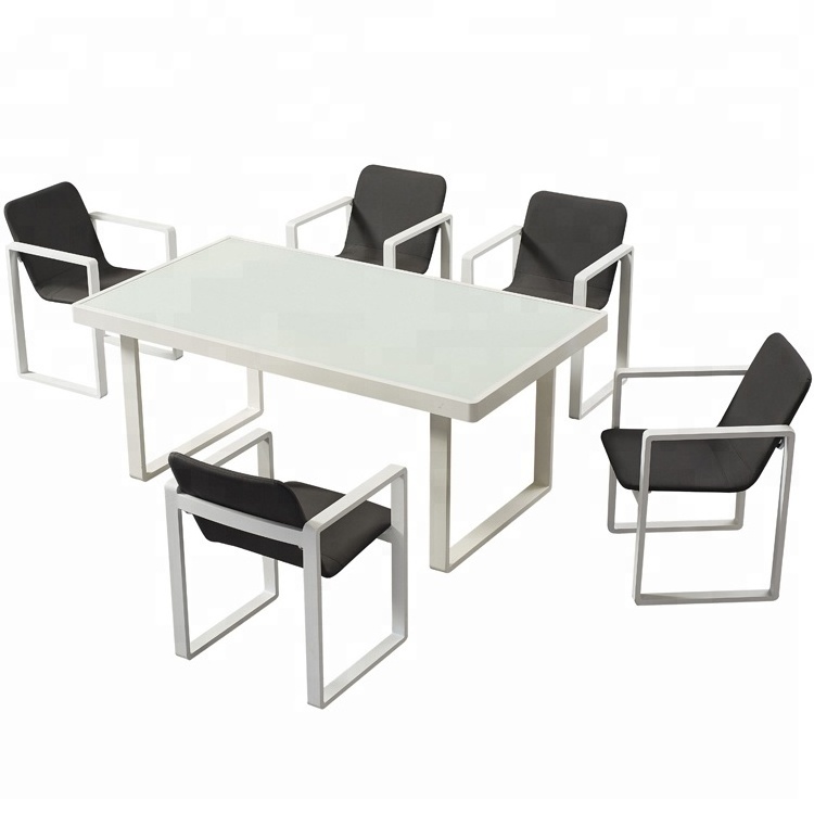 Chinese Modern Outdoor Patio Furniture Garden Aluminum 6 Seats Dining Table and Chairs Set