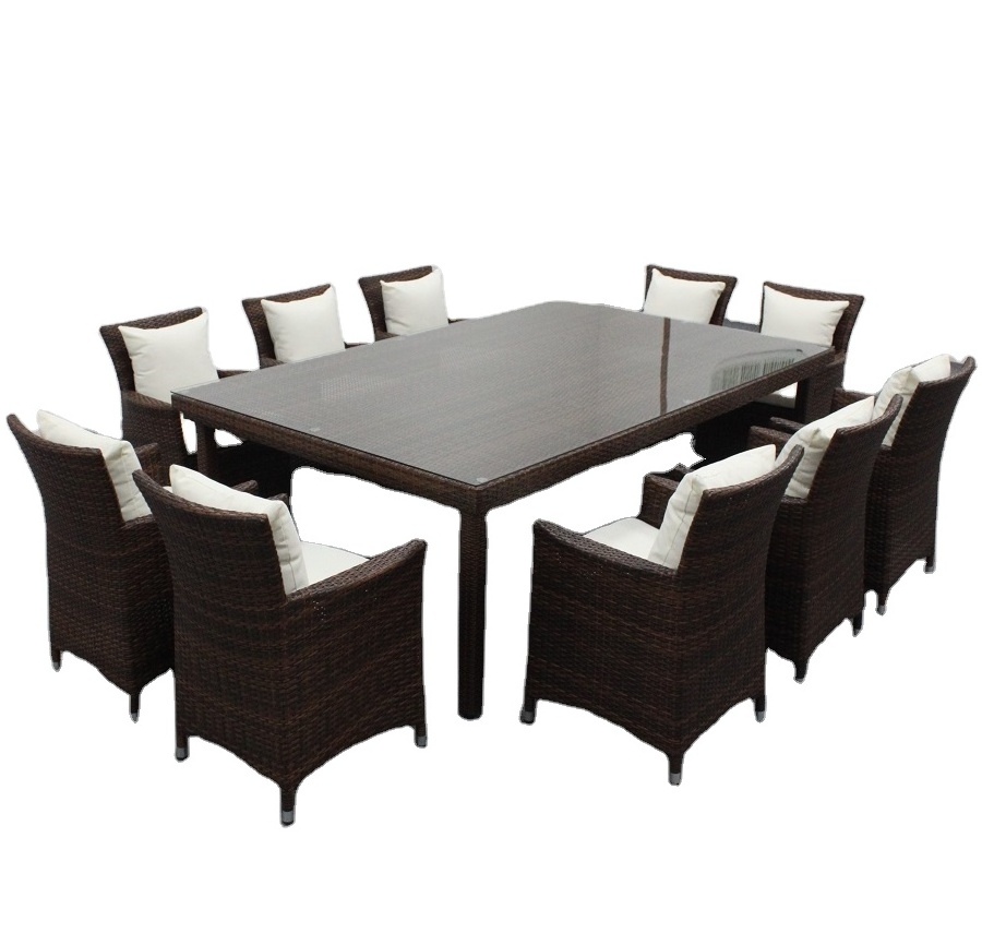 10 seater outdoor metal frame PE rattan rectangular dining table set