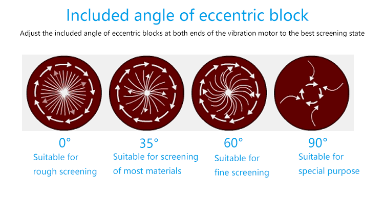 Adjusting the phase angle of the upper and lower ends can change the movement trajectory of the material on the screen surface.