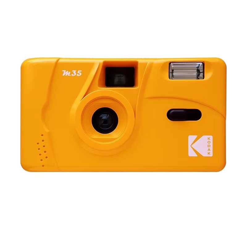Kodak M35 is a reusable film camera that use 35mm film. Just like it's range of disposable cameras, M35 has fixed focus lens, manual film winding and rewinding and switch to turn flash On/Off. Simply purchase a roll of 35mm film and load it in, take your photos, rewind and bring the film roll to develop at photo developing stores.