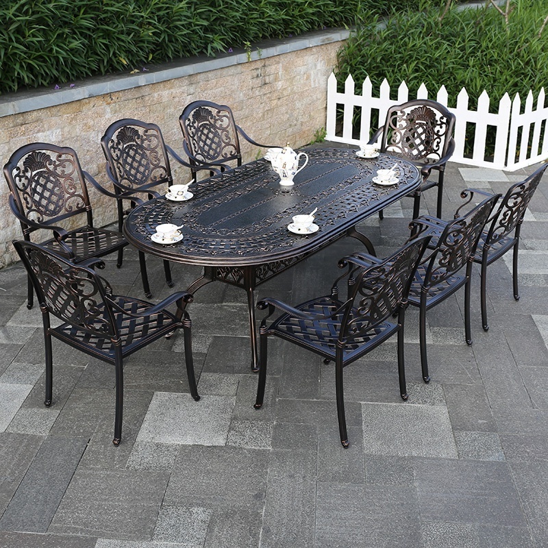 Factory Price Outdoor Gathering Furniture Die-casting Villa Iron Metal Dining Sets Specific Use Deluxe Bistro Garden Set