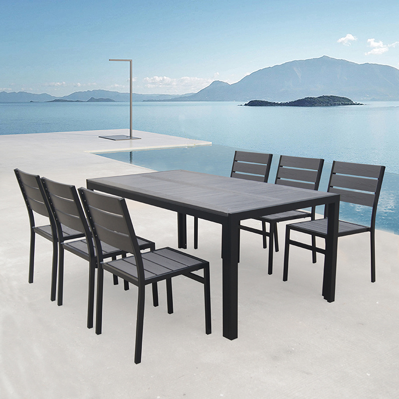 patio furniture factory direct wholesale aluminum plastic wood garden table and chairs