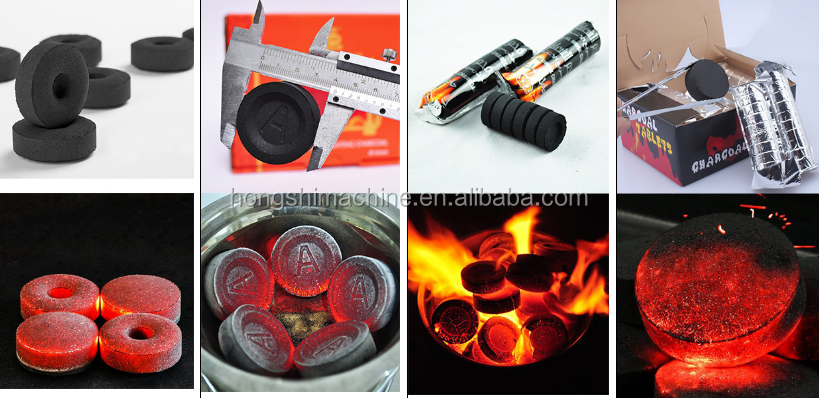 Shisha Charcoal Press Machine is applicable to make various shape charcoal briquette such as squares, cuboids, rings, rhombus triangles, cylinders, capsules, cones, convex, concave and other geometric shapes.The charcoal briquette can be with logo and design.The raw material is charcoal powder with binders. It can be ignited by a match with smokeless, tasteless and non-toxic when burned.Widely used for church incense and Arabs to light hookahs.