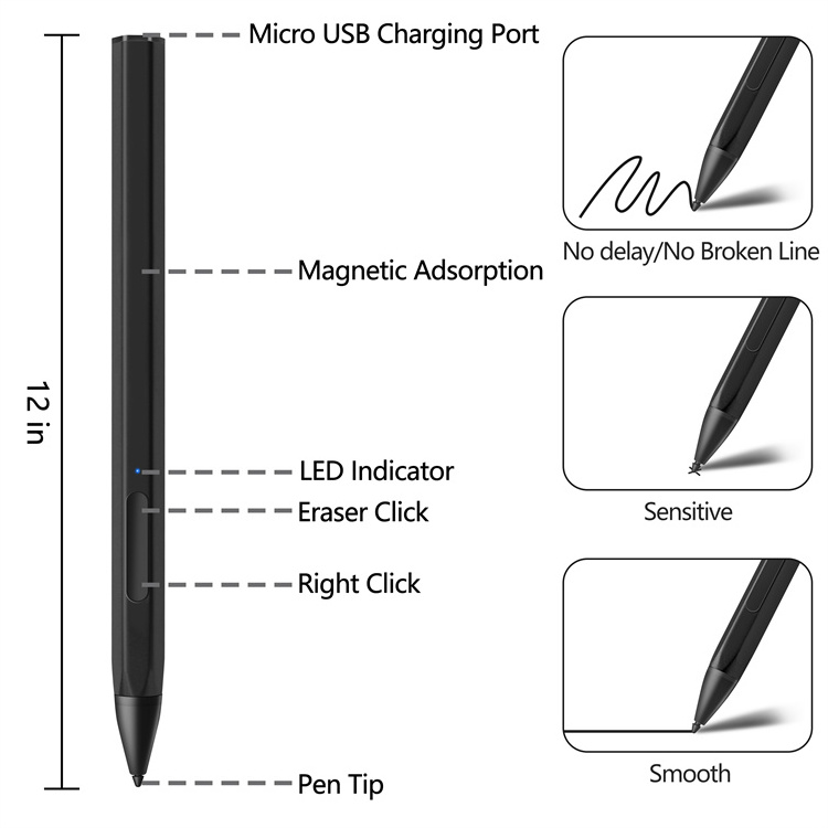 Support rerfect palm rejection, Magnetic adsorption, Replaceable tip, Micro USB super flash charge