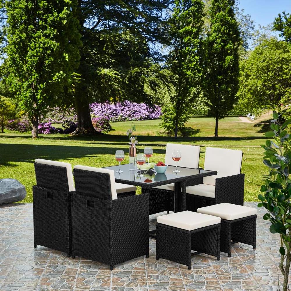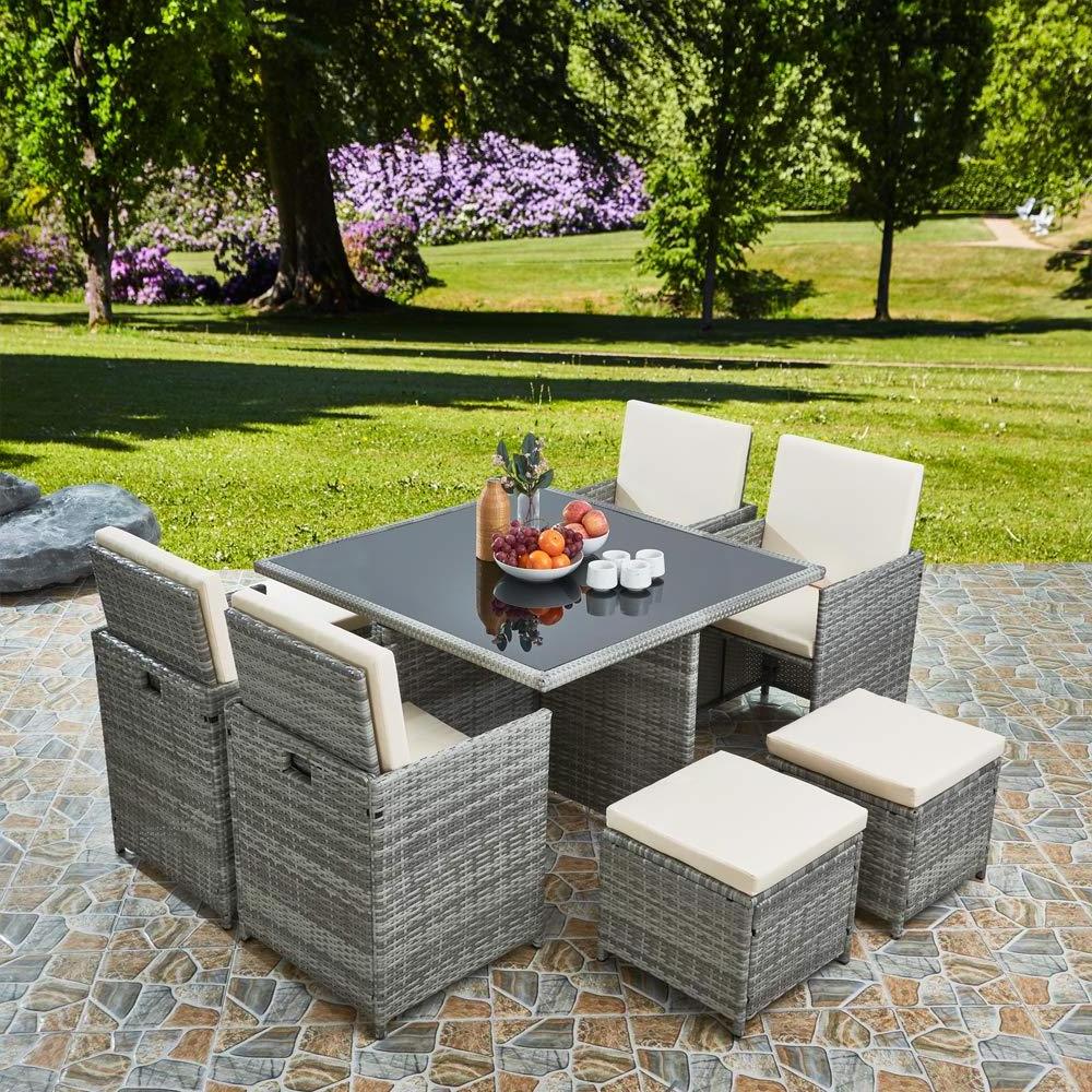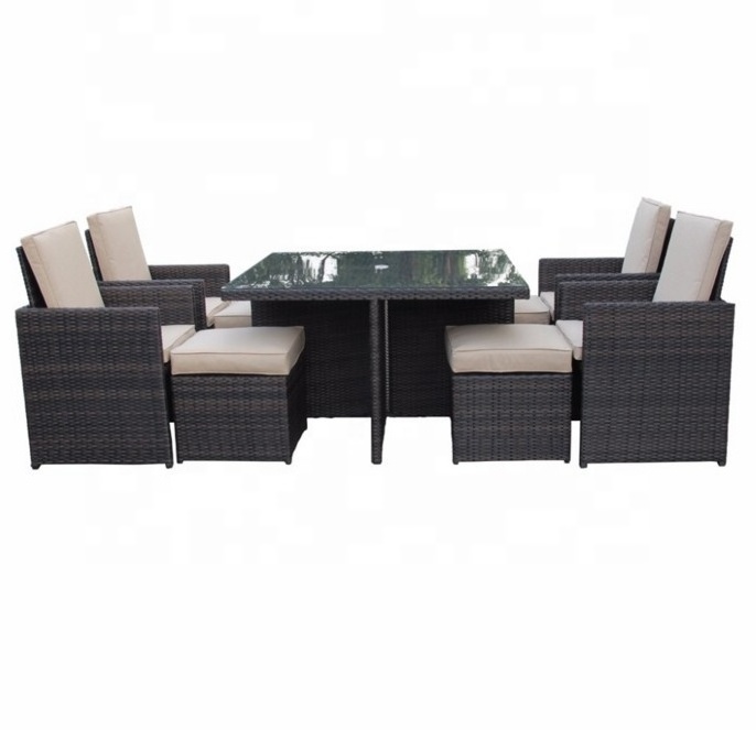 Luxury outdoor garden furniture rattan cube dining table chairs sets