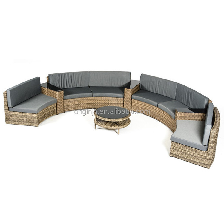 Outdoor patio modern sectional rattan furniture and round tea table 6 seater curved back sofa loveseat