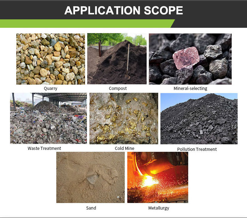 1. Quarry: suitable for screening and classifying gravel, clay, mountain meal, sand, etc.