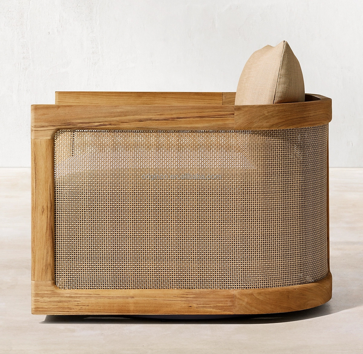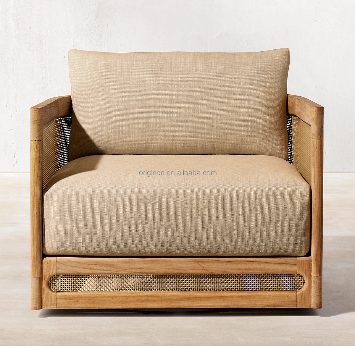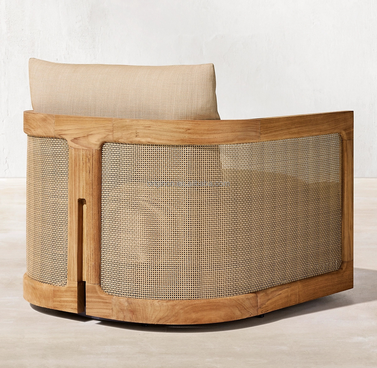 2023 new deign patio teak furniture solid wood comfortable garden swivel sofa chair