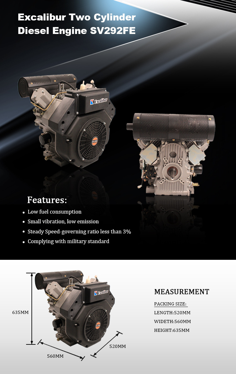 Excalibur 4-stroke, air cooled, Diesel Engine can be widely used in many application such as construction site by powering the Road Roller, Tamping Rammer, Scarifying Machine, Concrete Cutter, Power Trowel; also can be used as the power for weldering generator, water pumps, power tillers etc.