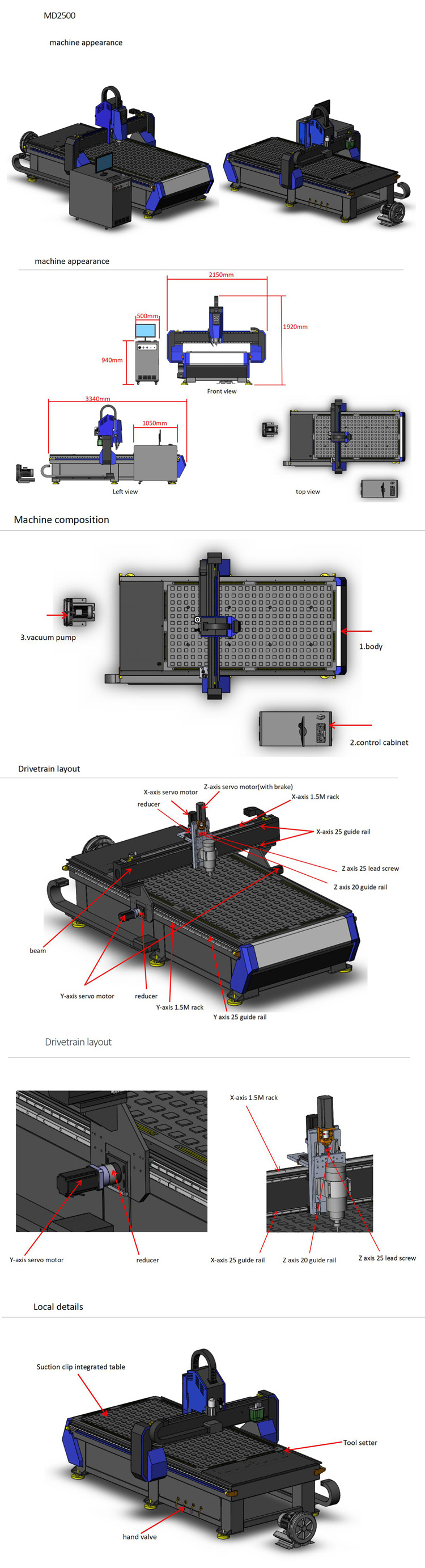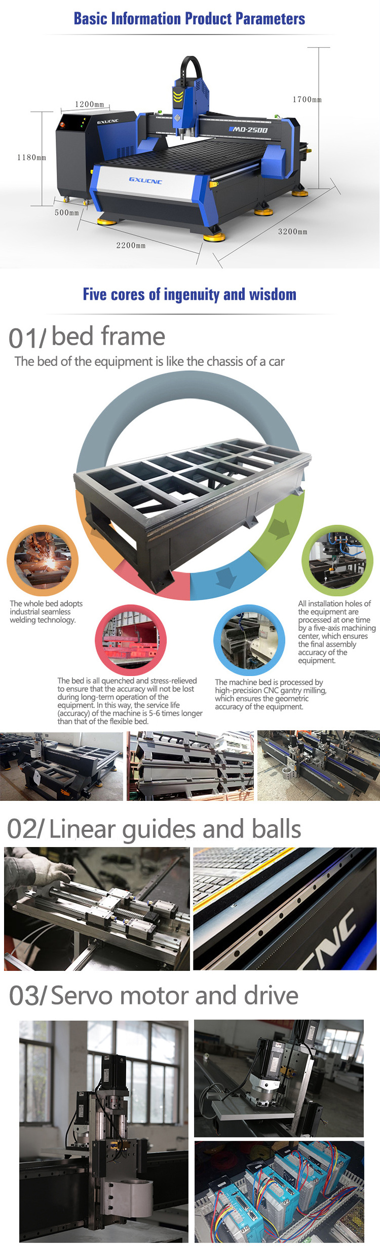 , main body with Industrial welding technology, quench dealing method and then with high precision milling maching to build. All the accessories are all made one time by 5 axis machining center to ensure machine's rigidity and accuracy.