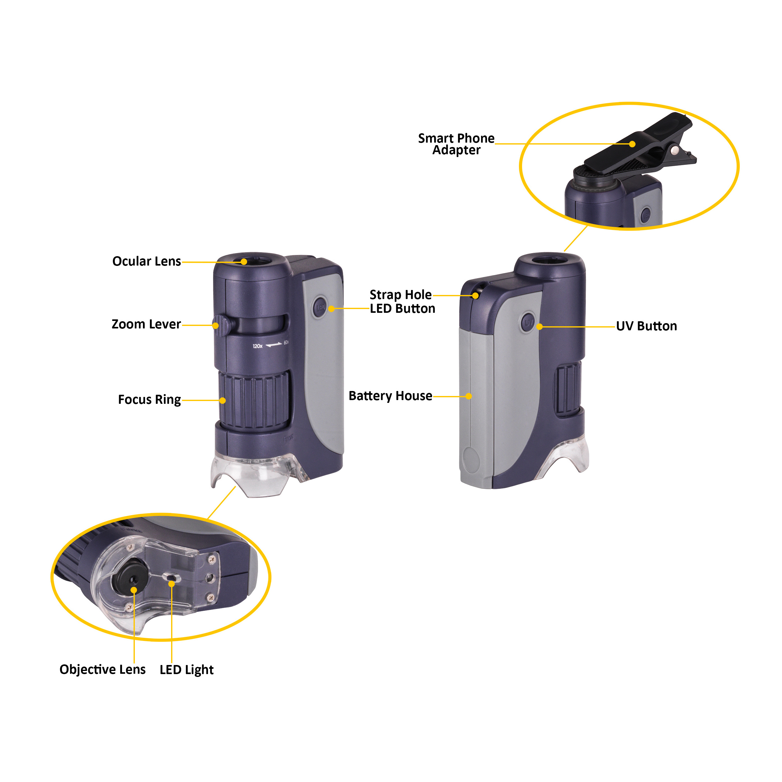 Educational Mini LED Light Portable Handheld 70-140X Clip Magnifier Loupe Pocket Micro Microscope for Kids Student Exploration