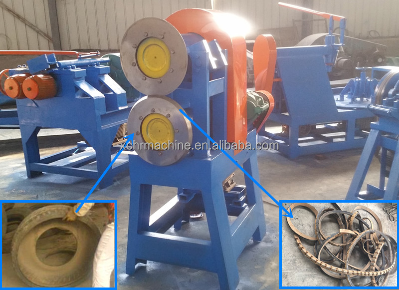 : Strips cutting machine can cut cycle machine to remove the wire tire sidewall cut into strips, and the width of the adjustable section. Two circular knives for special materials, hard and durable, can be used repeatedly grinding for no more than 1200 steel tires. If the tire size big ,we can customized bigger cutting machine