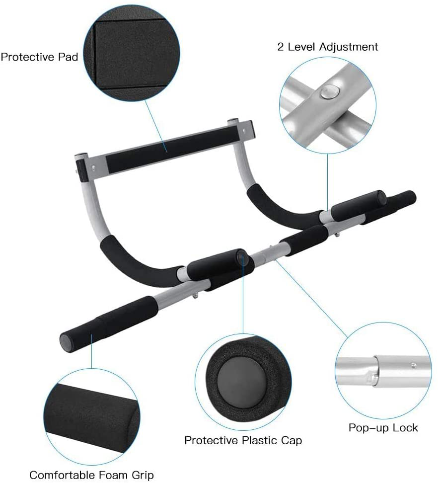 INNSTAR Pull Up Bar Doorway Heavy Duty Chin Up Bar Trainer For Home Gym pull up bar or for sit ups, push ups and dips. Pull up station are easy to install and does not require any drilling. Pull up rack, fully functional, all-in-one pull up, chin up, push up bar in the market today pull up bar door multi-function chin up bar is an inexpensive and easy way to tone up your muscles and get that beach body you always wanted. Pull up bar for door works on your back, chest, shoulders, arms, and abdominal compound muscles! Pull Up Bar Doorway is a multi-function strength training device that promises to sculpt your upper body through pull ups, chin ups, and abdominal work.