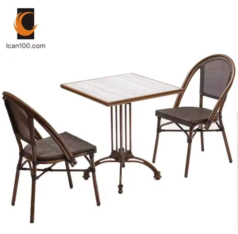 Aluminum frame rattan chair and ceramic table(2chairs+1table)