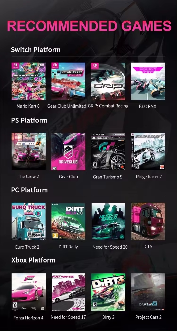 1.Racing wheel for PC, PS3, PS4, XBOX-ONE, XBOX SERIES, SWlTCH consoles.
