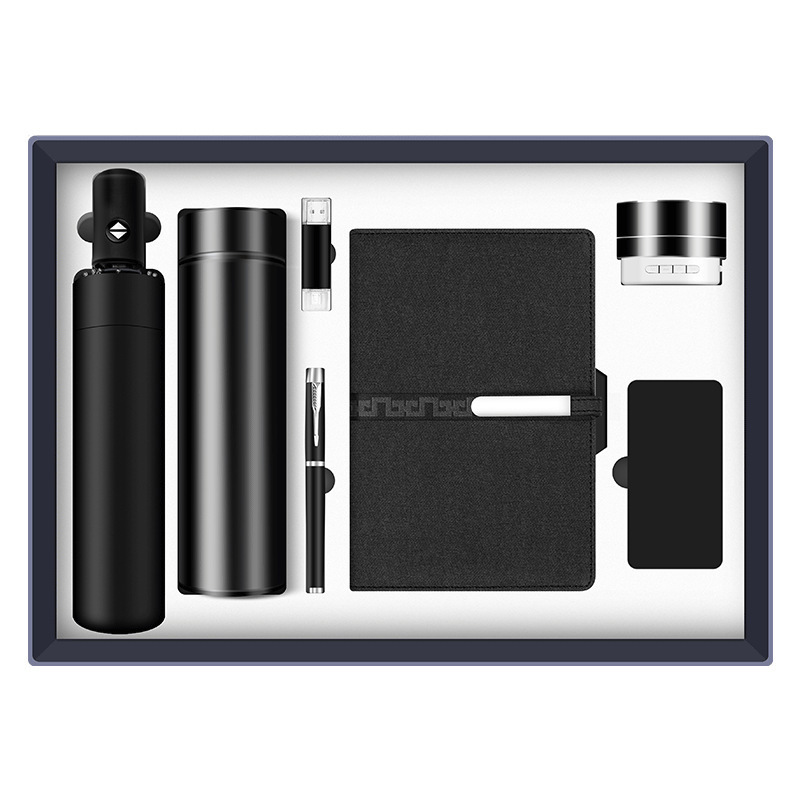 FXL Without MOQ New Arrival A5 Notebook + vacuum flask + USB flash drive + pen + A5 notebook + speaker + power bank Gifts Set