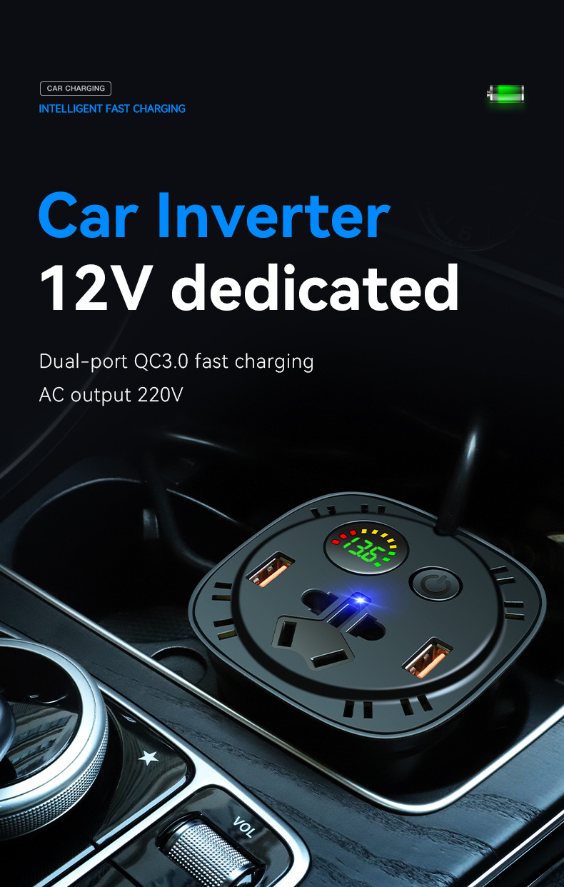 12v to 220v 110V car power inverter,Dual QC3.0 USB port,on/off switch with LED voltmeter display