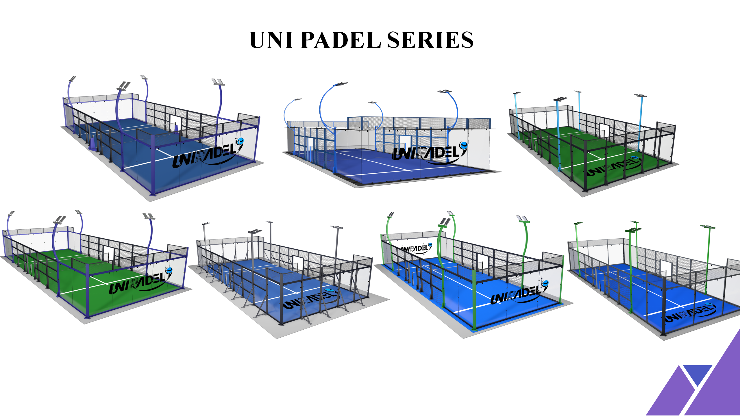 Padel court is currently one of the most popular sports in the world. We are manufacturer of padel court --- unipadel. We very pay attention to every details. Complete accessories are provided for installation: including LED lights,12mm tempered glass, 12mm high density artificial turf, and good quality metal structures. There are three main types --classic, panoramic and 360 Full panoramic.Color combination to be selected by.