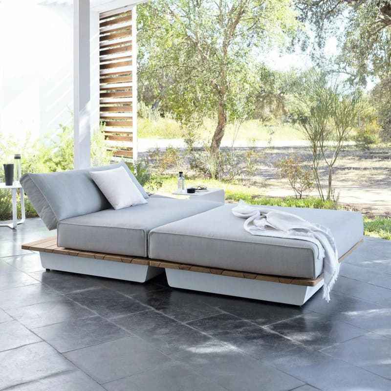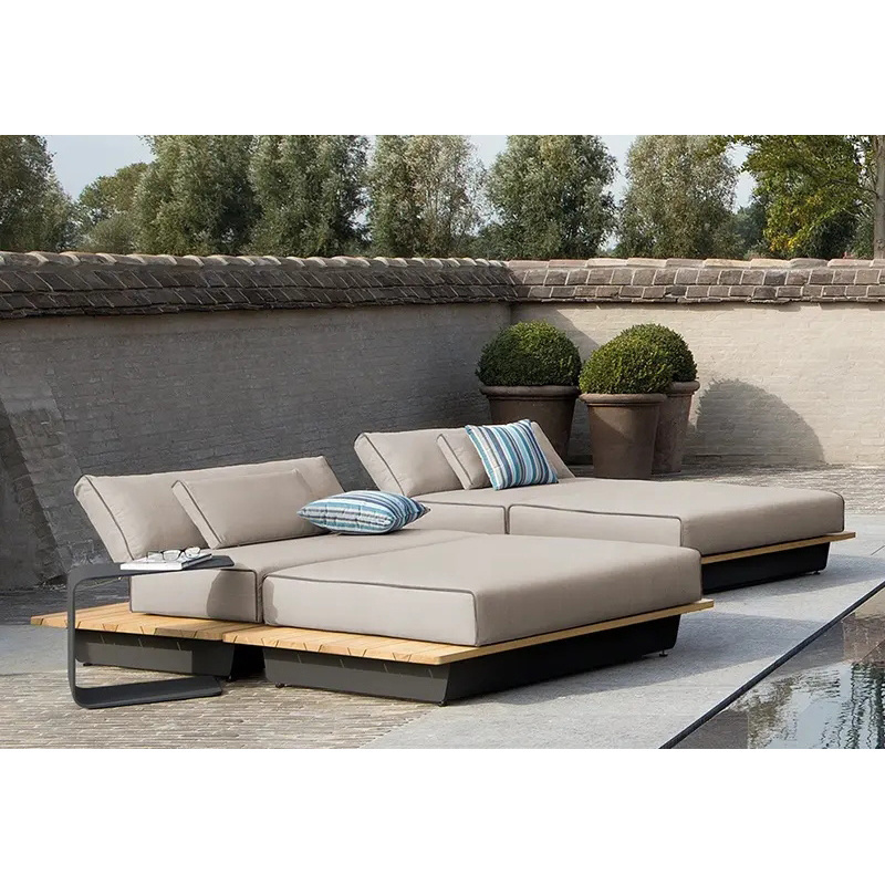 Teak and aluminium mixing swimming pool bed and side table lounger daybed outdoor furniture