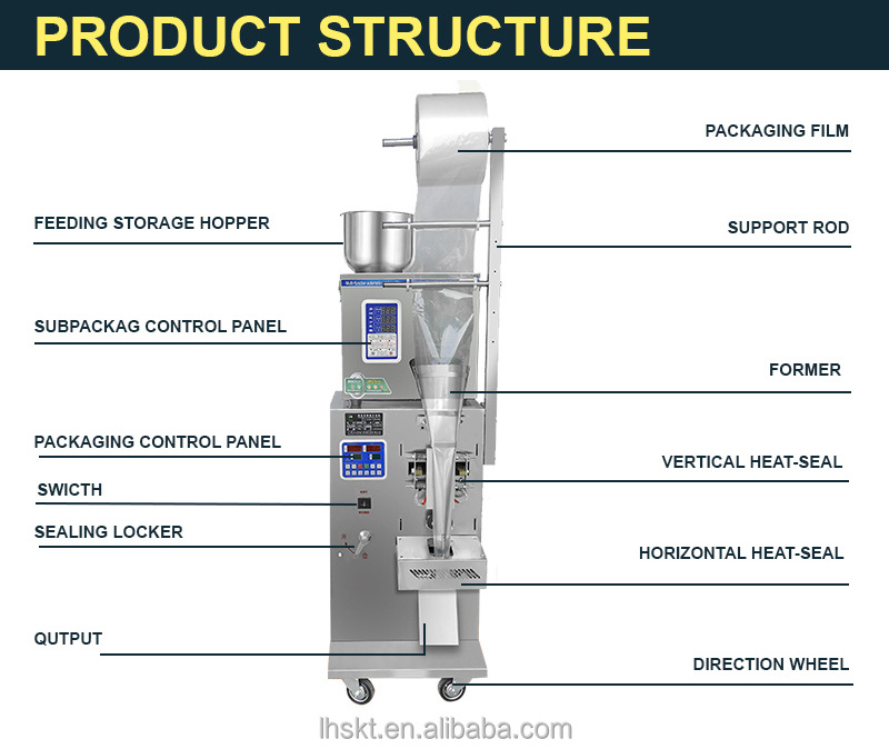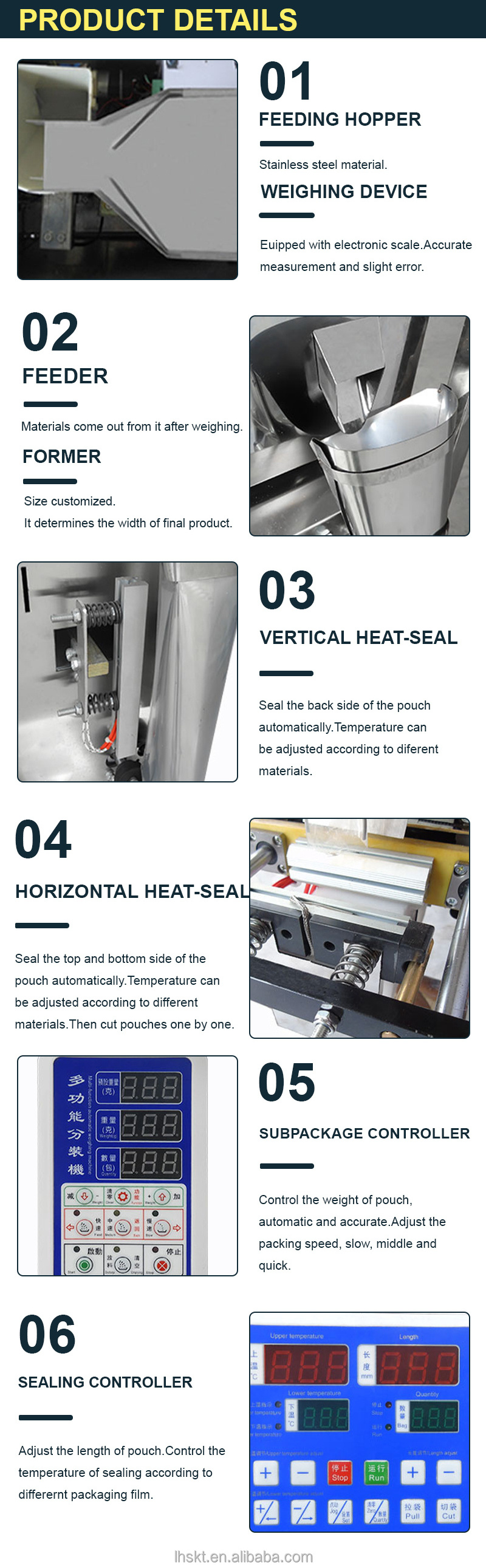 Automatic filling design, quick cutting, innovative and intelligent, high efficiency; can set the length of the bag, more