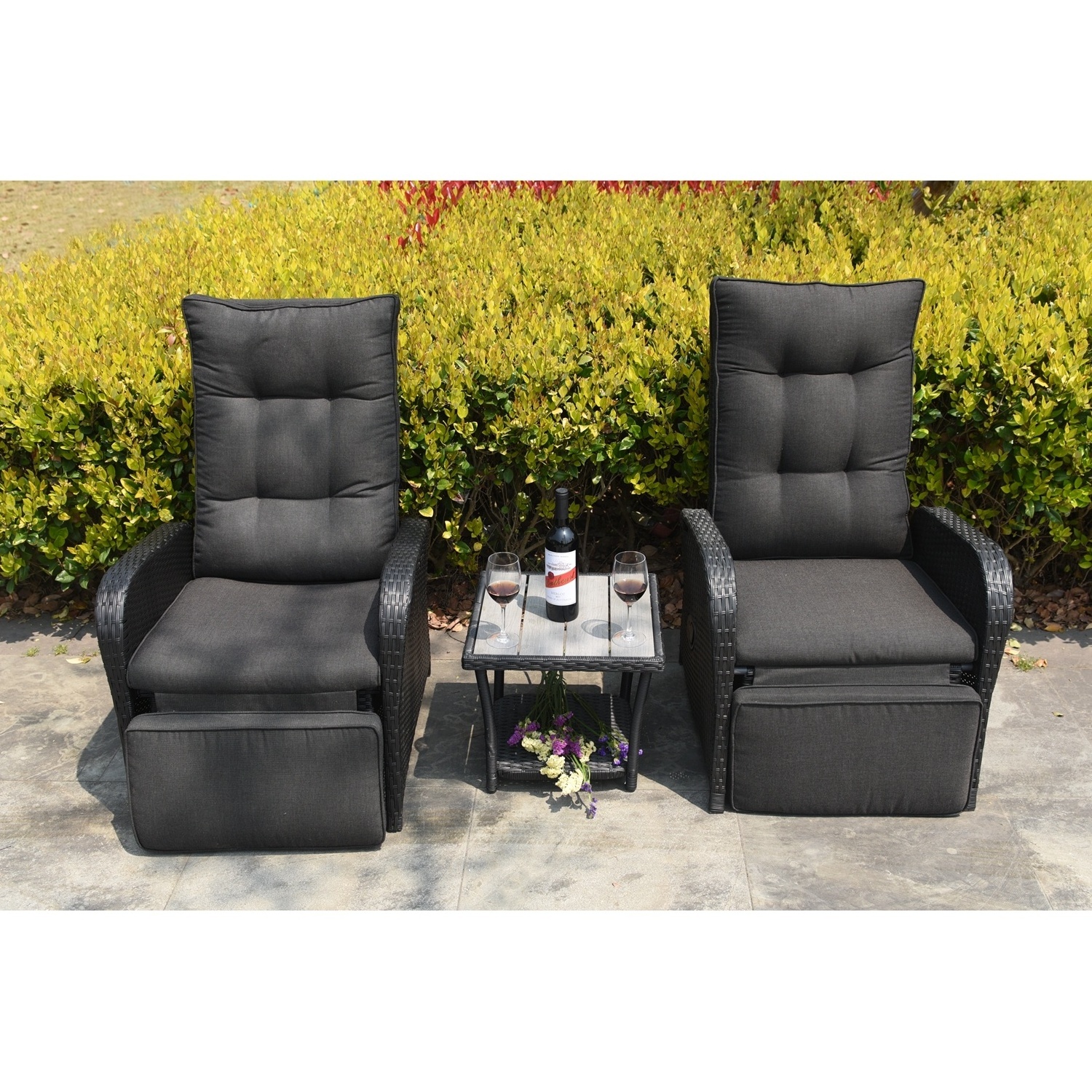 Wholesale Cheap Outdoor Patio Furniture Balcony Rattan Bistro Set 3 piece Tables and Adjusting Chairs Set