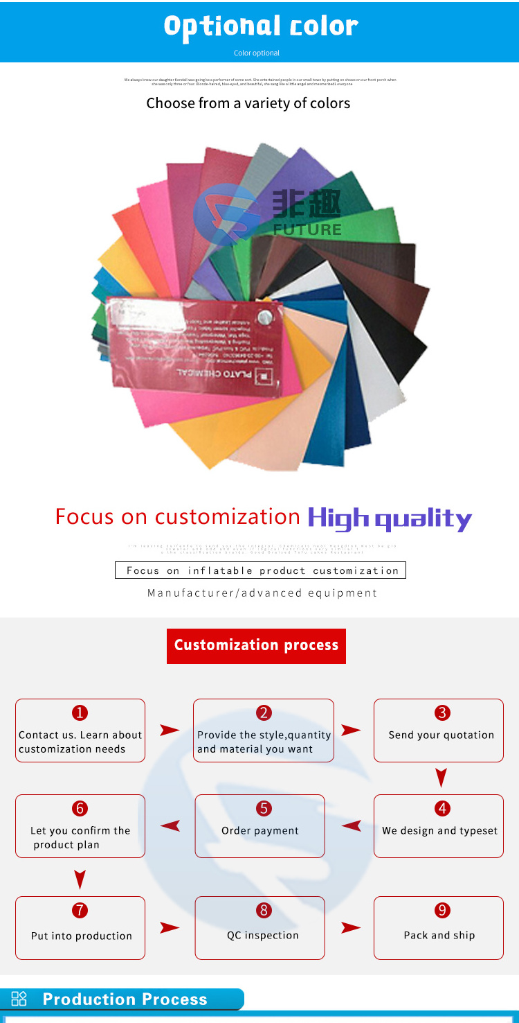 Founded in 2010, Hangzhou Future Inflatable Technology Co., Ltd. is a large-scale professional inflatable technology company integrating scientific research, production, sales and technical services. Based on the principle of "science and technology for the public", the company is committed to the transformation and promotion of inflatable technology achievements. While developing products with independent intellectual property rights, it actively introduces and screens high-quality product resources from all over the world with Asia as the center. At present, there are three production workshops. The company has a professional team in the field of inflatable product technology, with rich experience in the design and manufacture of inflatable structures, materials, machinery, and electronics.