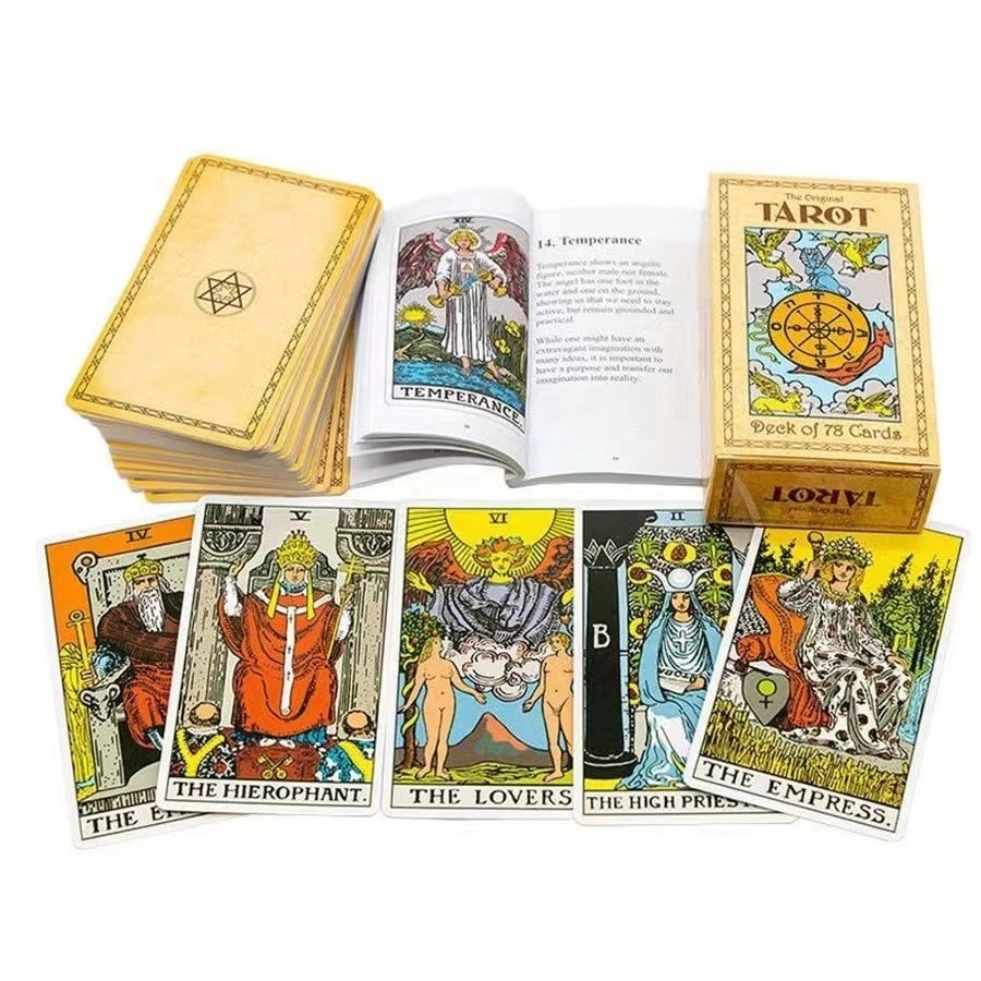 The card is made of environmentally friendly material PET, the surface is treated with gold foil, 100% waterproof; The shuffle effect is perfect, the whole deck of 78 cards, standard Waite series tarot, luxury with elegance.