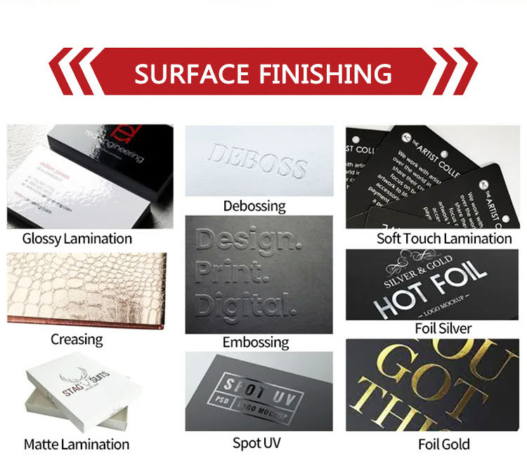 Cover: Glossy stock, matte stock, PVC, PU leather, Cloth etc.