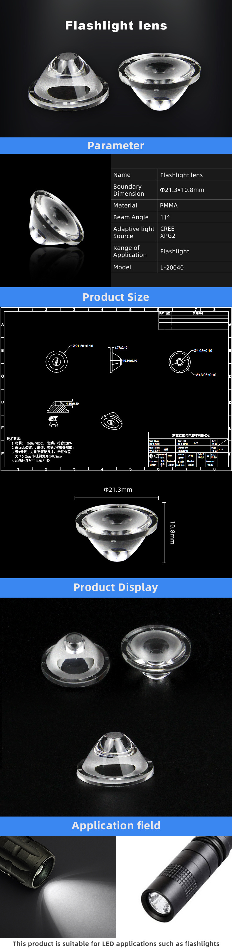 A: Please show us necessary beam angle, lens size, LED type etc.