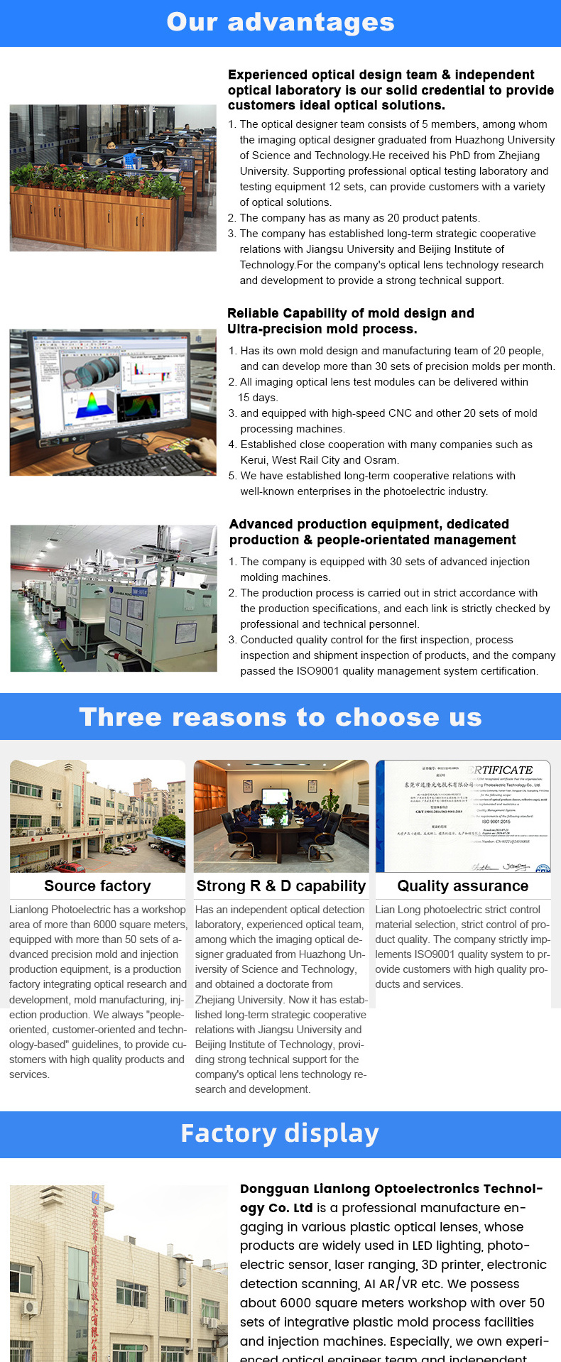 Manufacturer specializing in plastic optical lens customization