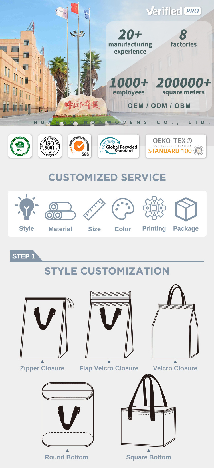 7.Certifications: SGS, ISO9001, ISO14001, ISO45001, Reach, BSCI, OEKO, GRS, etc.