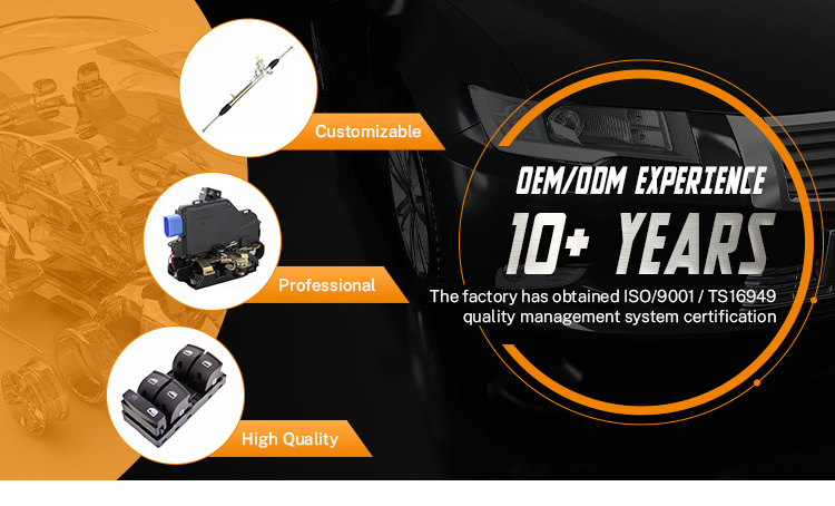Aelwen Auto Parts Company comes from a traditional family corporation with producing auto parts. With our more than 10 years experiences, we have developed 10 brands and 40 customers who have cooperated for more than 5 years. The main products of Aelwen are including : Steering Rack, Door Lock & Handle, Auto Switch, Auto Sensor, Drive & Transmission System, Suspension & Steering Parts, Engine Parts, Auto Electronic, Body Parts and other vehicle parts. We always choose reliable factories which has obtained ISO/9001 / TS16949 Quality Management System Certification. "