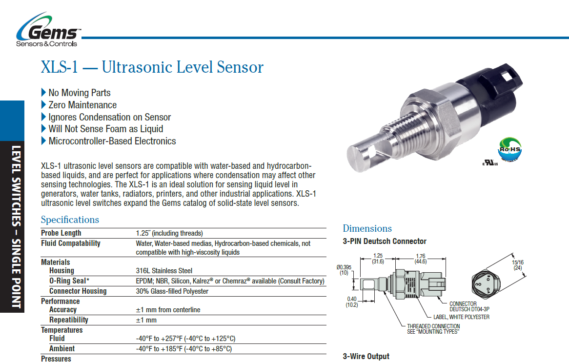 Ultrasonic level sensor, Ultrasonic Liquid Level Transmitters ucl510