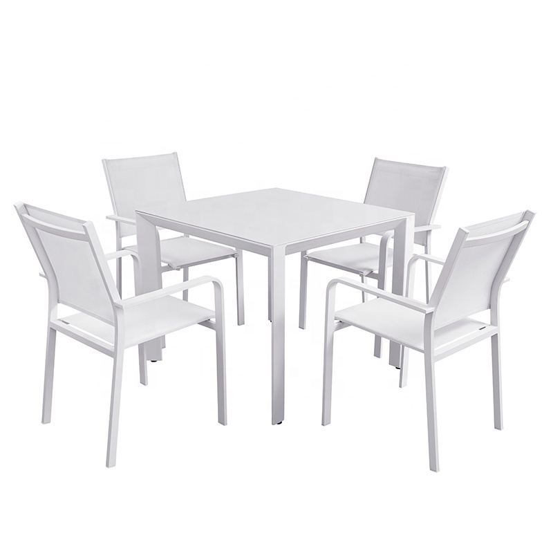 Modern White 5 Piece Garden Furniture Outdoor Patio Aluminum Dining Table Set 4 Seater Chairs for Restaurant on Sale