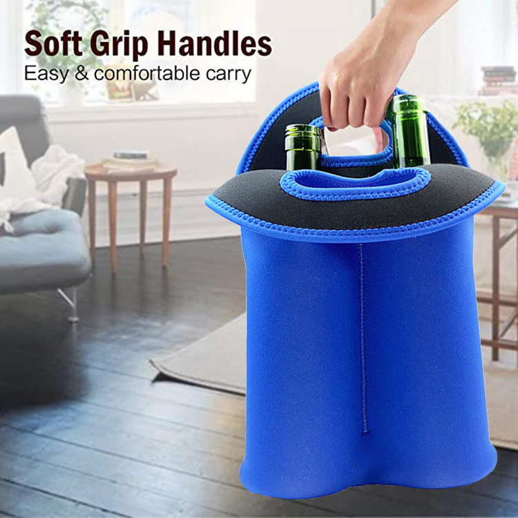 Neoprene Tote Wine Soft Cooler Bag 2 Pack Bottle Holder Thermal Insulated Beer Bags for Travel Picnic Carry Cooler