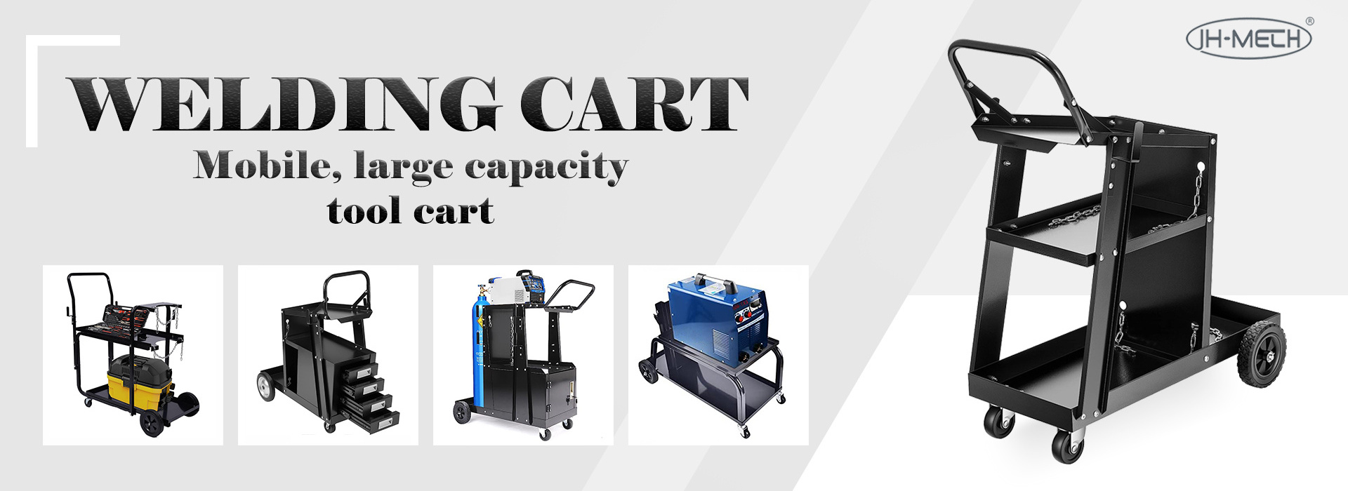 Don't worry, JH-Mech welding cart can solve your problems. The three-layer plane can accommodate a large number of tools, and your tools can be placed together, making your work more efficient and safe.