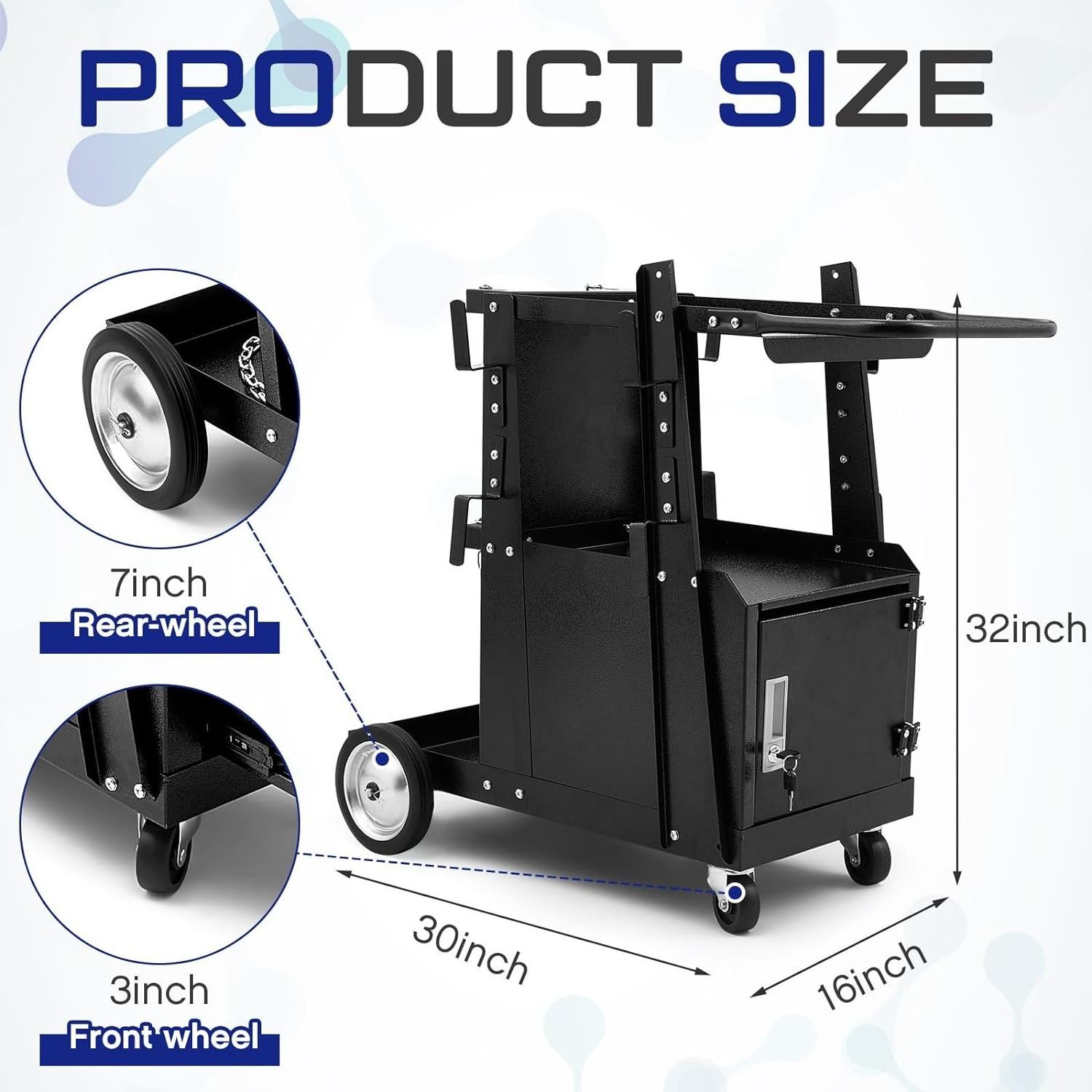 JH-Mech 3 Tier Weld Cart Heavy Duty Factory Workshop Welding Carts with Storage Bold Chain Cable Hook Weld Cart