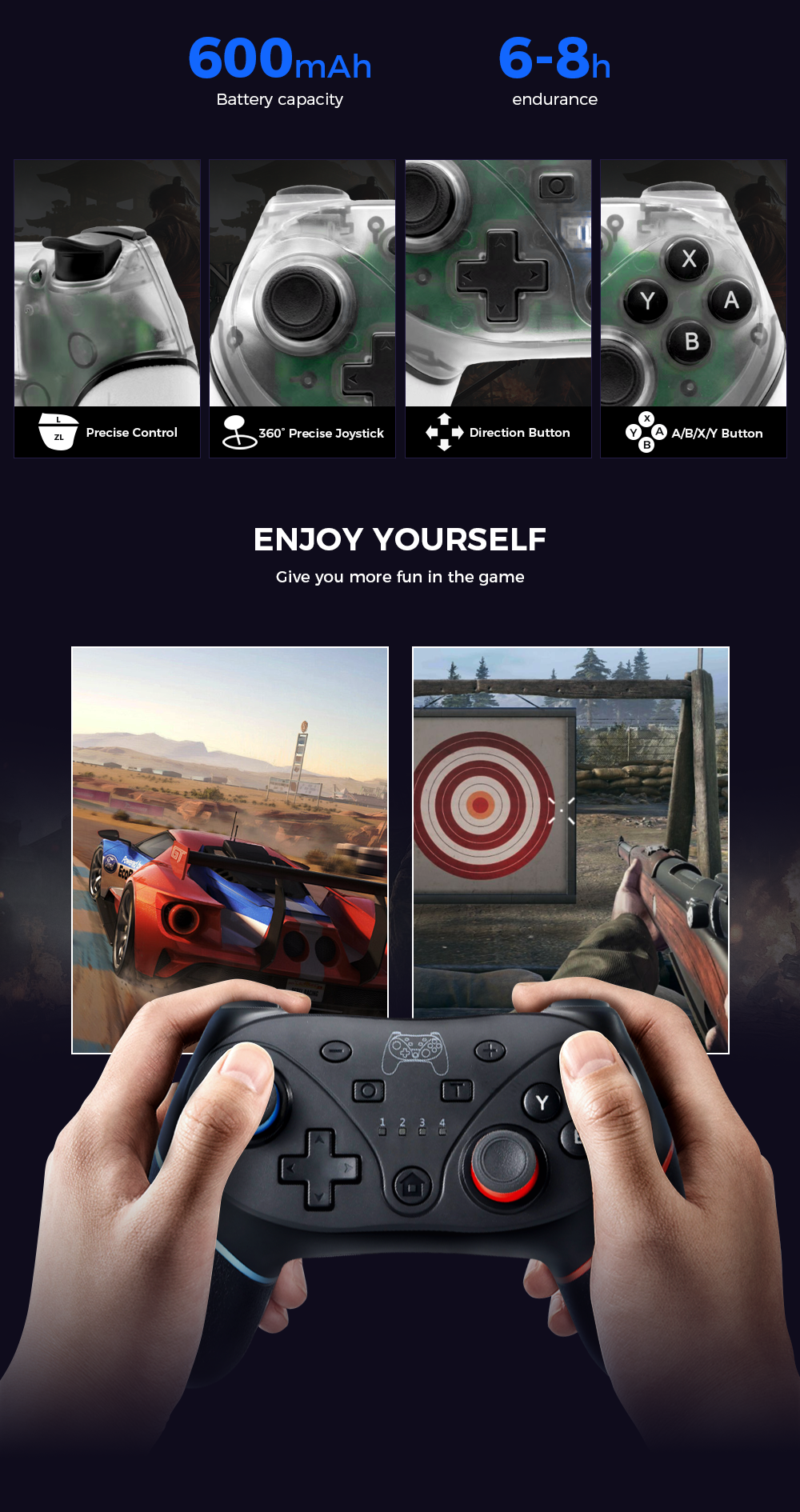 etc. Play games feel very sensitive, not stuck. With dual motor vibration function, six-axis gyroscope.