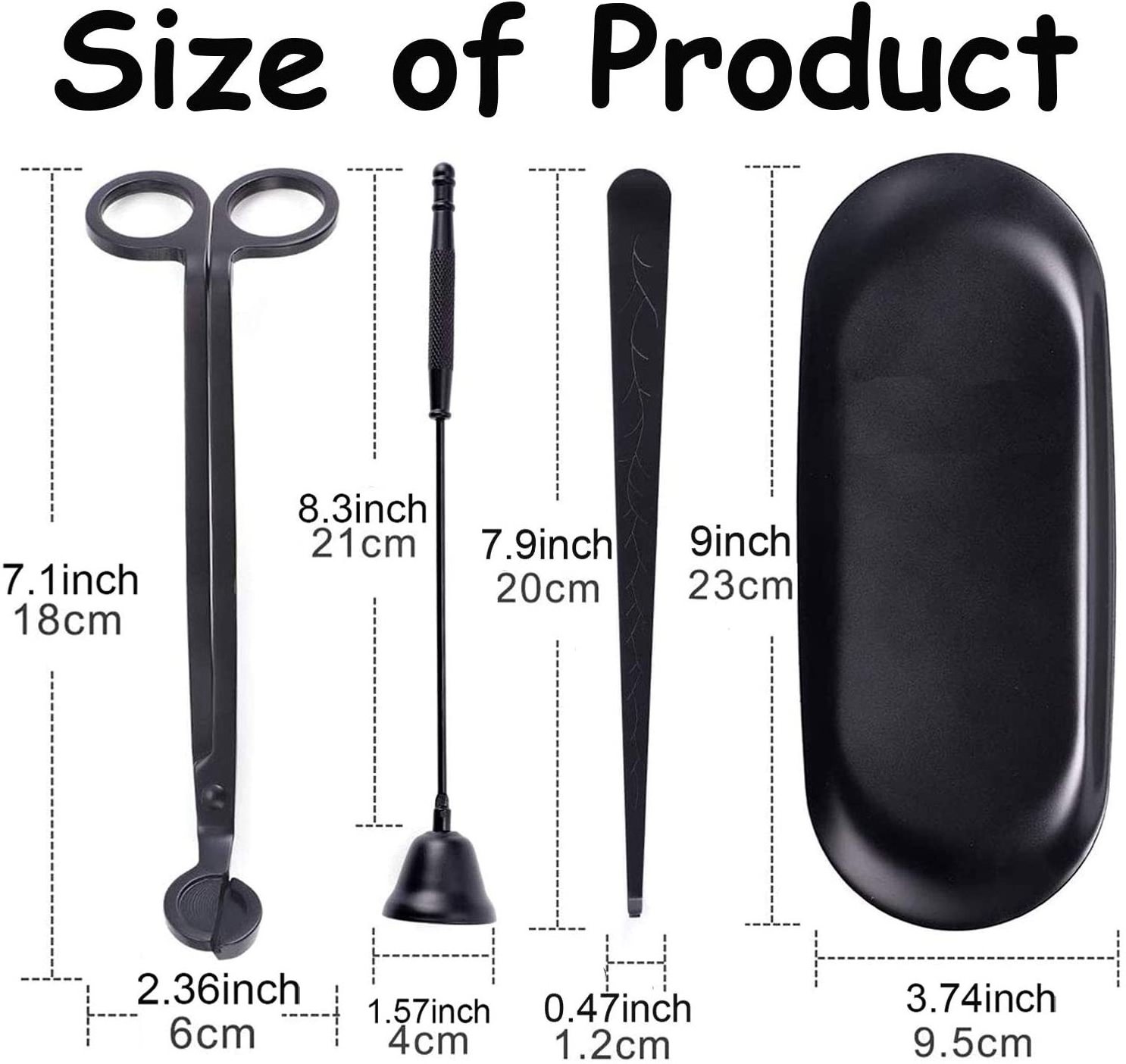 18 cm(trimmer) /17 cm (snuffer) /20 cm(dipper)/23 cm(Tray)