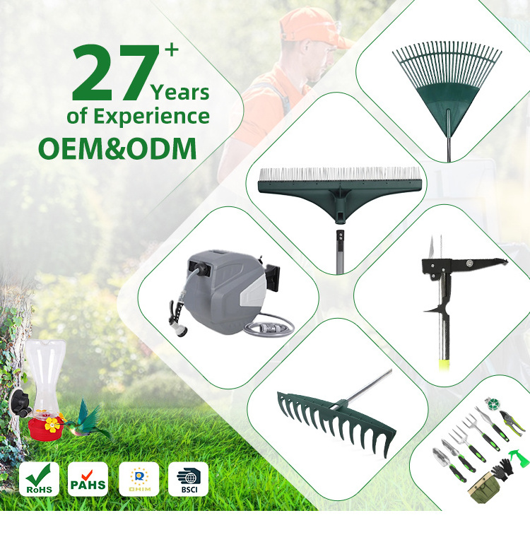Plastic Rake Lightweight Adjustable Collect Leaves 23 Tines Garden leaf hand rake Leaf rake with PBT blade