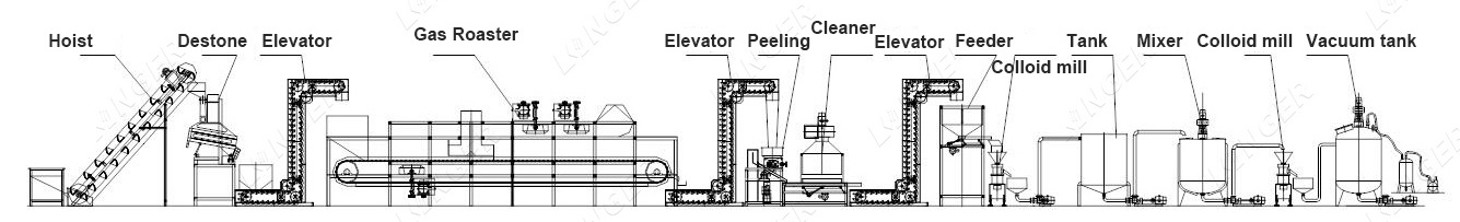 peeling half peanut machine, picking belt, elevator, peanut butter grinding machine, agitator tank, transfer pump, mixer,