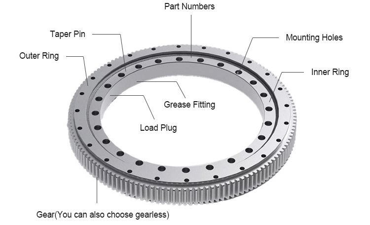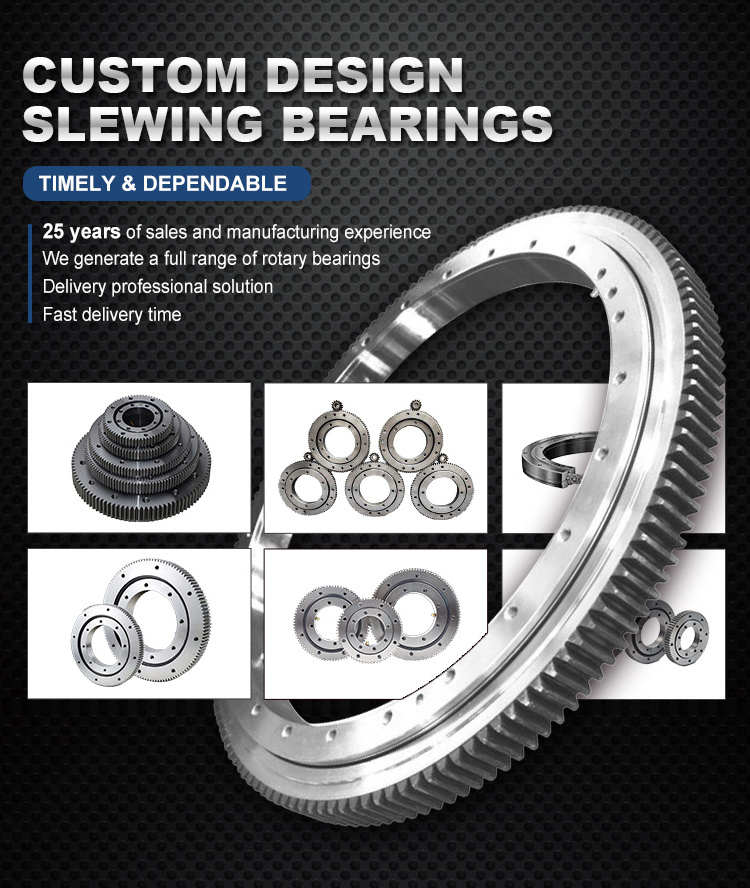 The company has seven series of slewing bearing series production technology, the production of slewing bearing raceway center diameter 200-5000mm, a variety of standard and non-standard specifications of slewing bearing, with the ability to produce more than 1000 different specifications of slewing bearing models, and exported to Europe, America, Asia and other countries and regions. Products are widely used in engineering machinery, construction machinery, mining machinery, amusement equipment, ships, ports, petroleum, chemical, light industry, food, aviation, military, instrument and other industries. It has the characteristics of compact structure, light weight, good rigidity, stable operation, high precision, safety and reliability.