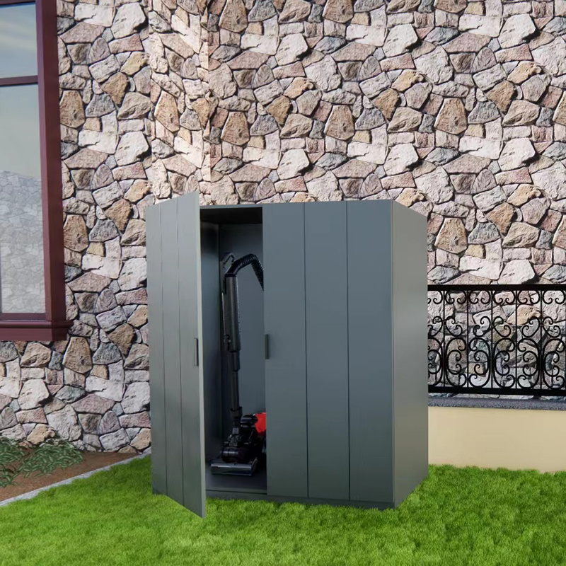 The outdoor vertical storage shed is constructed of high-grade aluminum board. Don’t worry about water will permeate into the aluminum, specially designed for outdoor use.