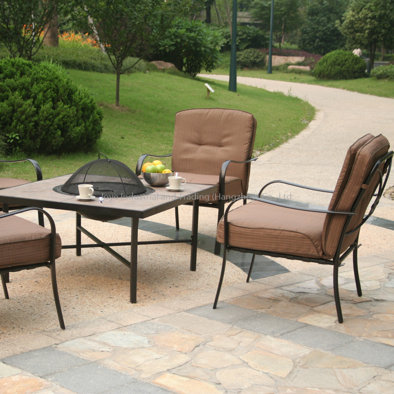 Joyeleisure Outdoor Furniture Set 5PCS Steel Frame Dining Firepit Table & 4 Chairs Modern Design